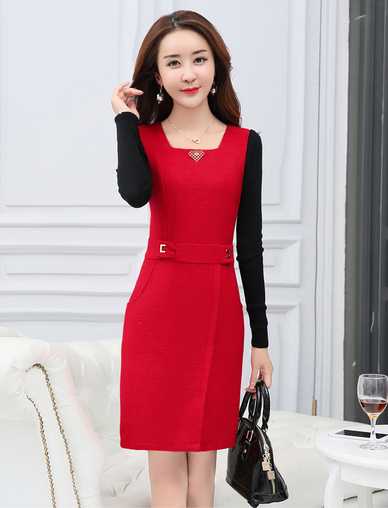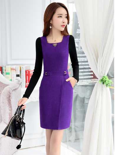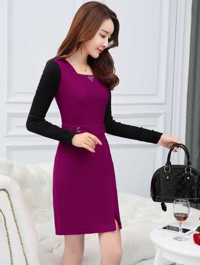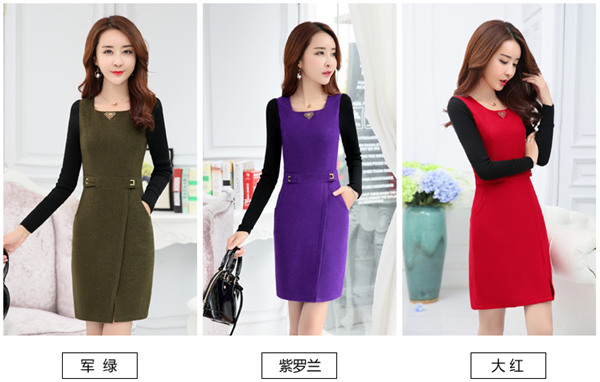 米肯2016秋冬新款时尚长袖中裙优雅连衣裙女 2029